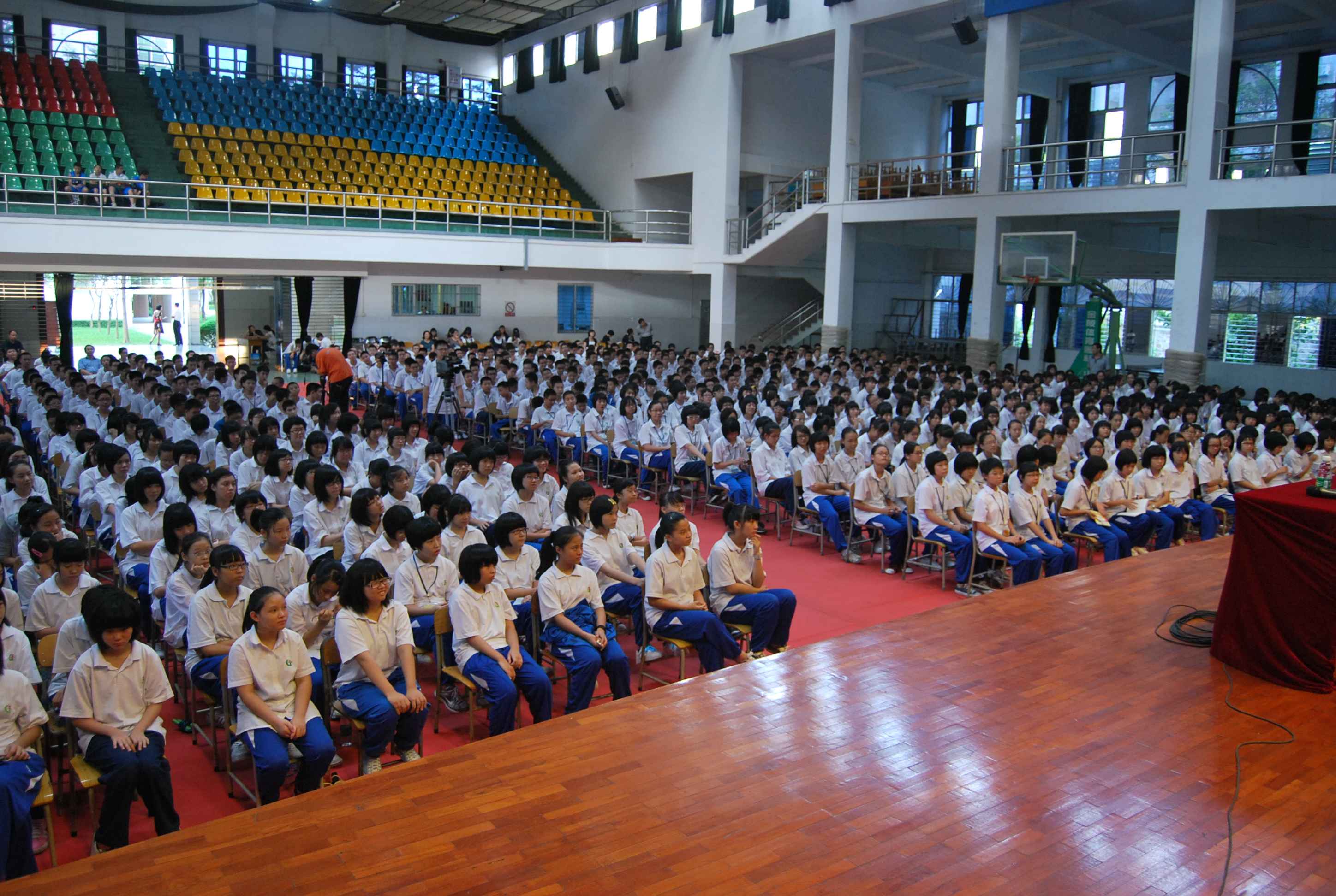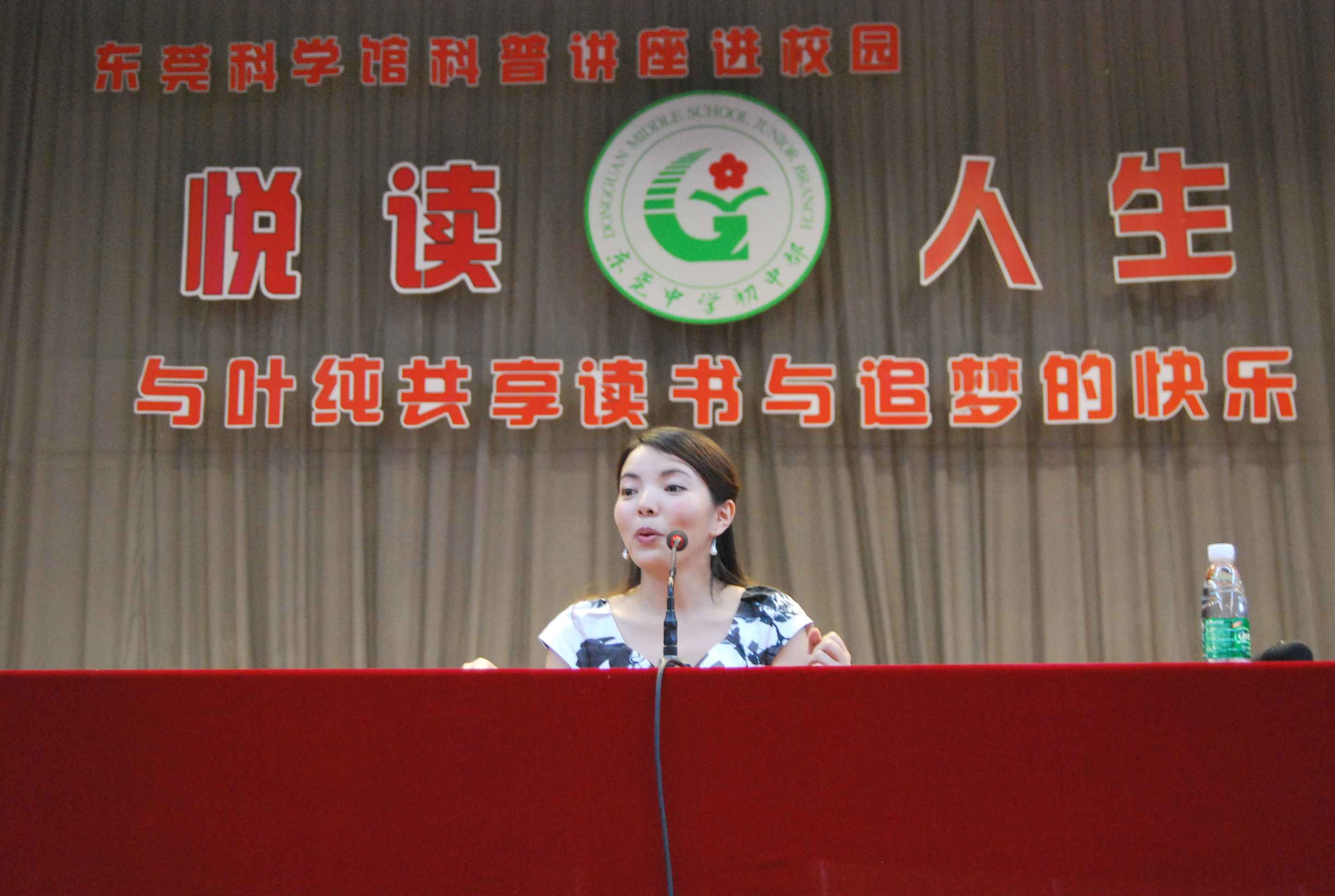 10月18日下午,东莞中学初中部学校体育馆内座无虚席,千余师生正专注地聆听东莞广播电视台著名节目主持人叶纯作题为《悦读人生》的专题读书报告会。这次的专题报告会,是东莞科学馆科普讲座进校园系列活动之一,也是东莞中学初中部第七届读书节系列活动中的重头戏,由东莞中学初中部和东莞科学馆共同主办。