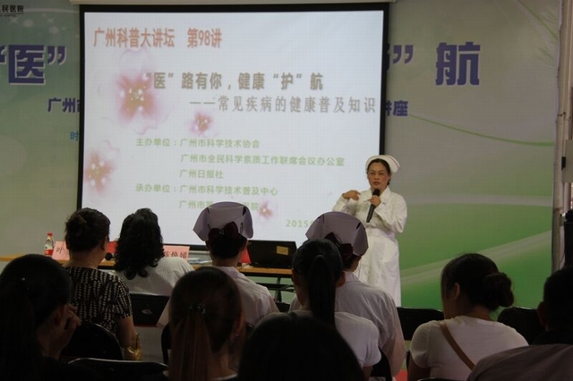 7月10日,广州科普大讲坛第98讲在广州市第一人民医院内科大楼广场开讲,本期讲坛以“糖尿病自我管理面面观”为主题,是专门面向社区居民开展的普及系列的讲座,特别邀请到广州市第一人民医院副主任护师陈焕娣作主讲嘉宾,广州地区社区居民和广州市第一人民医院部分病患200余人聆听了讲座。