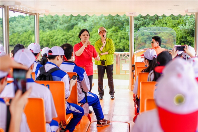 活动当天,学生们来到南沙湿地公园,在听障志愿者的带领下,一路乘船观赏了红树林、芦苇荡、莲花池、鸟巢和鸟类觅食区等景区。通过讲解员的一路介绍,以及手语翻译员的译解,启聪学校的学生对很多科普知识有了比较详细的认知。在水鸟世界,学生们与东方白鹳、古巴火烈鸟、西非冠鹤等48种国家一、二级保护动物近距离相处,让学生们有如走进自然生态丛林,无屏障地接触大自然景观。