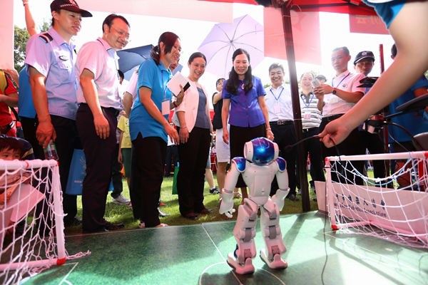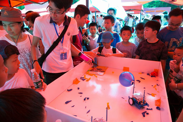 上万名广州市民和科技爱好者来到华南植物园参加活动。在现场,高新技术企业、高校、科研院所、科普资源单位带来了一大批采用最新科研成果的产品和体验项目, 供市民体验互动,拉近了前沿科技与普通市民的距离。例如,华南理工大学能弯能折的彩色柔性AMOLED显示屏项目和广州华立科技股份有限公司带来的VR体验展位前都排起了长队;广州市光机电技术研究院带来的“意念控制趣味机器人”,只靠大脑就能跟朋友打“对抗赛”,新奇有趣;广州大学带领市民亲自探索获得诺贝尔奖的物理实验,寓学于乐;3D打印展位上,市民输入五官三维信息,还可以打印一个“自己”。市科协还精选了一批青少年科技创新大赛获奖项目在现场上进行了展示,如中山大学附属中学的学生带来的“全天候智能化交通协管机器人”、省实天河附属学校的“人字梯活动安全架”项目等,吸引了大批家长带着孩子共同观摩体验。