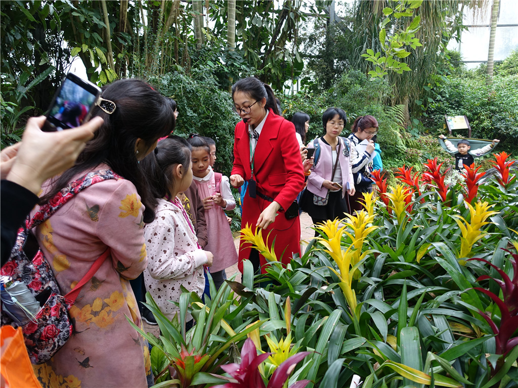 3月18日上午,广州市青少年科技中心在华南植物园举办主题为“我是植物侦察兵”的2017年“千师万苗工程”青少年科学营,来自25个家庭的同学和家长在3名植物园的科普专家的带领下,学习植物科普知识。