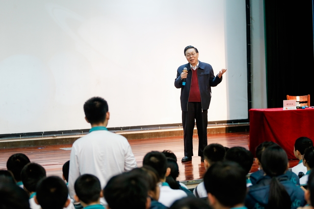 在科普讲座中,欧阳自远院士深入浅出地讲解了中国月球探测的发展战略、长远规划以及取得的科学成果,并与现场500多名中学生进行互动交流。