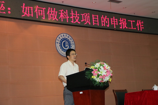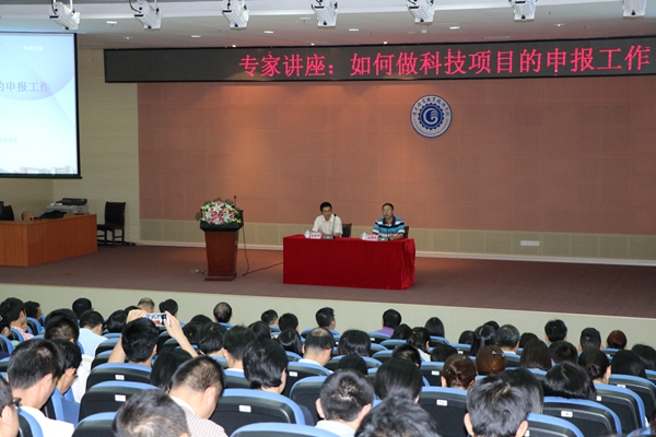 5月5日下午,广东机电职业技术学院科协在北校区报告厅召开科技项目申报工作培训会,邀请广东省科技厅规划与财务处处长陈楚祥作“如何做科技项目的申报工作”专题报告。广东省科技厅原副巡视员、广东省科技管理研究会理事长姚化荣,广东机电职业技术学院党委书记蓝祥龙、校长郑伟光,副校长谢臣英、佘少华、李铭辉出席大会,学校副科级以上干部及专兼职教师400多人参加培训。会议由广东机电职业技术学院科协主席、副校长佘少华主持。