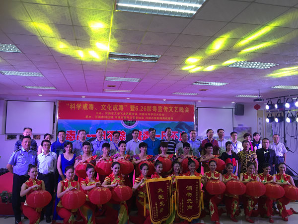 为深入贯彻落实党的十八大精神,推进社会主义核心价值观宣传工作,进一步加强禁毒宣传教育,丰富在所戒毒学员的精神生活,在第29个国际禁毒日来临之际,6月23日晚,河源市科技馆与河源市民间文艺家协会、河源市强制隔离戒毒所共同承办了,由河源市文学艺术界联合会、河源市科学技术协会主办的,在河源市强制隔离戒毒所举办的“科学戒毒、文化戒毒”“6.26”文艺联欢晚会。