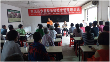 7月15日,由东源县科协、丽亮种植专业合作社共同主办的水晶梨管理技术培训班在东源县鲜绿态水晶梨科普示范基地举行,培训班由具有十几年种植管理经验的丽亮合作社理事长、水晶梨土专家张伟亮负责授课,船塘镇50多名种植户参加了培训班。
