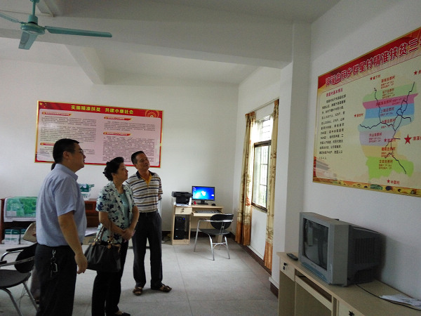 随后,吴素香一行参观了驻村工作队办公室。她高度评价驻村工作队在扶贫宣传、建档立卡、健全制度等方面工作。