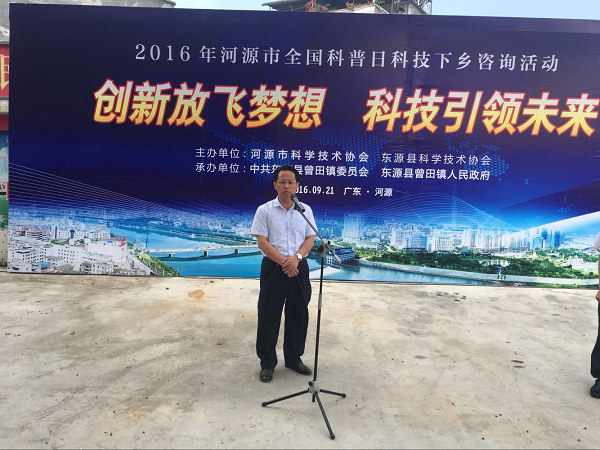 9月21日,由河源市科协、东源县科协主办,东源县曾田镇党委、政府承办的2016年河源市“全国科普日”下乡咨询活动在曾田镇府门前广场隆重举行。启动仪式由东源县科协党组书记潘育东主持。市科协党组书记、副主席陈春林,副主席钟道良,东源县科协以及曾田镇党委、政府领导出席启动仪式。东源县曾田镇镇长黄志勇在启动仪式上致辞,陈春林在启动仪式上讲话。