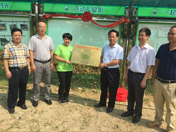 陈春林、钟道良等领导为市级科普教育基地东源县鼎峰药材种植基地专业合作社揭牌。