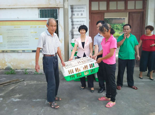 此次活动共发放蛋鸡180只,饲料1000斤,目前第一批贫困户已与合作社签约养殖蛋鸡项目,贫困户表示对脱贫致富充满信心。