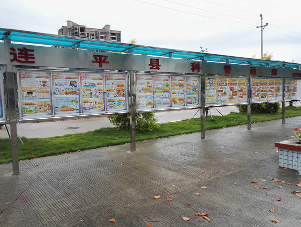 二、增建了两条高起点、高标准、高质量的科普画廊并投入使用。在连平县文化艺术中心、县城体育中心等人群集中、人流量大的地方建设两条科普画廊。画廊总长45米,重点宣传中央领导重要讲话、科普法律法规、节约能源资源、保护生态环境、保障安全健康等内容,科普画廊建设坚持高起点、高质量、高品味,画廊整体美观,一次性可以展出挂图70多幅,展出内容融知识性、趣味性、艺术性于一体,并做到了图文并茂、直观易懂、可读性强,为广大群众普及科学知识、提高群众科学文化素质,倡导健康文明的生活方式提供了良好的学习场所,得到广大市民的欢迎和好评。