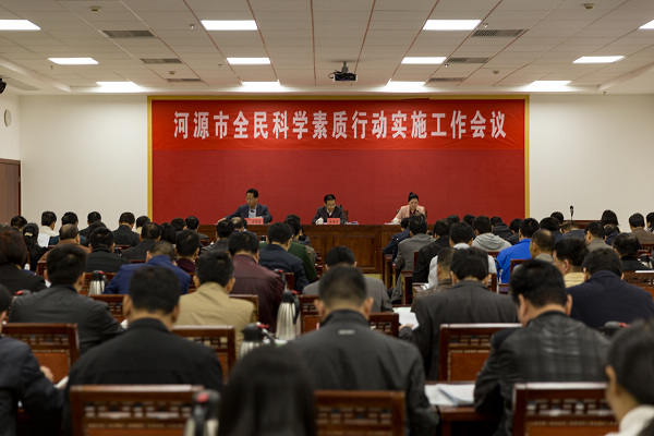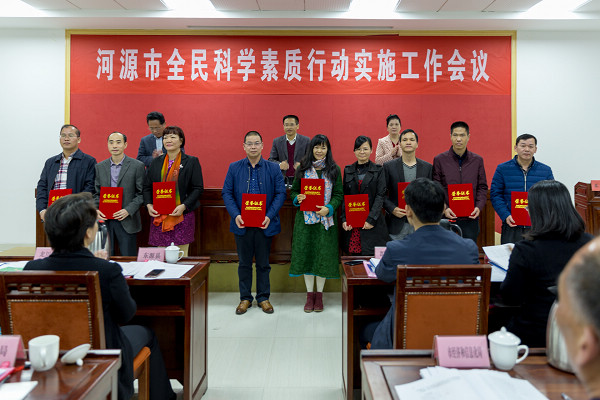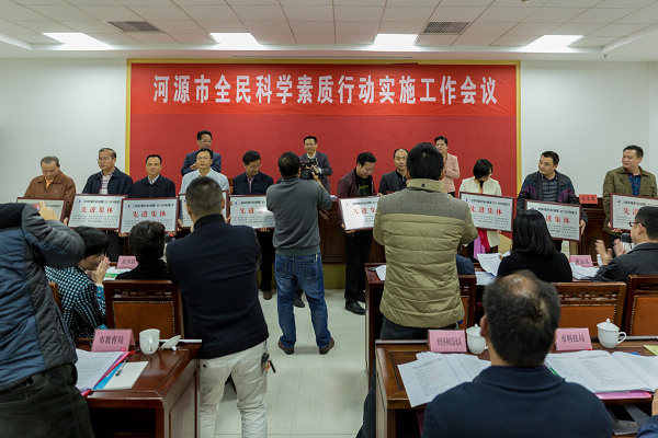 11月24日,河源市政府在市委党校召开河源市全民科学素质工作会议,贯彻全国科技创新大会、两院院士大会、中国科协第九次全国代表大会精神,落实全民科学素质行动实施工作电视电话会议精神,总结河源市“十二五”时期全民科学素质工作,部署推进“十三五”时期全民科学素质实施工作。河源市科协党组书记、副主席陈春林主持会议。河源市各县区政府(管委会)分管科学素质实施工作的副县区长,五县一区科学素质纲要实施工作相关单位主要负责同志,河源市科学素质纲要实施工作相关单位分管负责同志,受表彰的先进单位和先进个人代表90人参加会议。