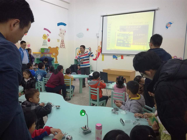 12月24日上午,应雅居乐小学同学们的强烈要求,市科技馆特为雅居乐小学一年级25个家庭举办了第四期科技创新电子制作亲子活动。