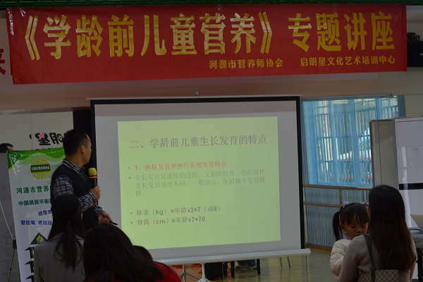 12月10日,河源市营养师协会携手启明星文化艺术中心开展学龄前儿童营养与膳食讲座。