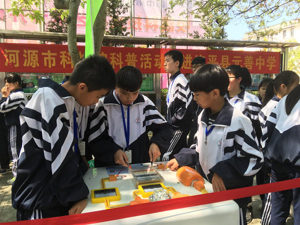 4月28日,河源市科技馆工作人员携带丰富的科普展品走进元善中学,助力连平县元善中学首届科技文化艺术节。