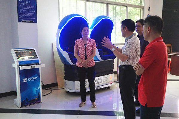 河源市科协领导到市科技馆察看VR虚拟与现实体验区