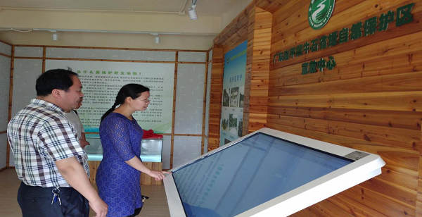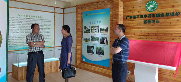 在广东连平黄牛石省级自然保护区宣教中心,何丽琴一行该中心负责人进行了座谈,听取了该中心在科普基础设施建设及科普宣传等工作情况的介绍。接着,参观了该中心的科普室、科普宣传栏及科普演示设备等设施。
