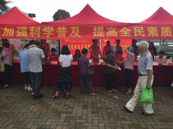 6月15日上午,河源市科协科普及党团员志愿者在源城区上城街道鳄湖边榕树下开展街头科技咨询服务活动,志愿服务的内容主要有医生义诊、派送科普宣传资料、宣传河源创文活动等,市科协志愿者向市民发送了包括居民科学素质读本、火灾脱险、防震救灾、食品安全与健康等科普小册子共500多份。