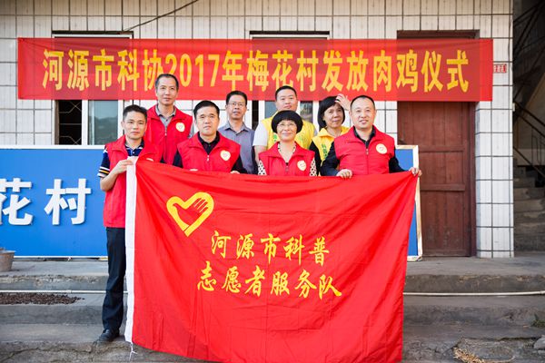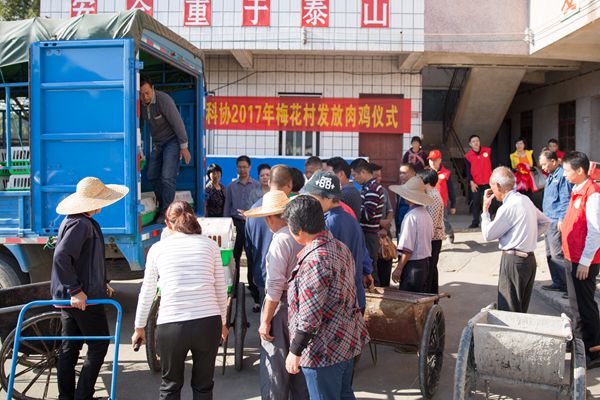 11月2日,河源市科协在帮扶的梅花村举办了“市科协2017年帮扶梅花村贫困户肉鸡发放仪式”。活动当天,为有意愿养殖的19户贫困户免费发放优质半成土鸡鸡苗190只,价值2万多元。