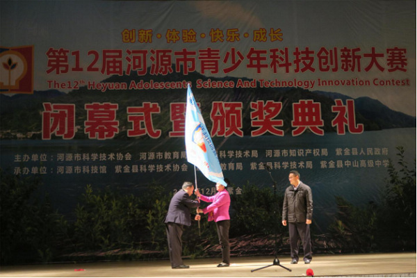 根据市科协的工作安排和要求,第13届河源市青少年科技创新大赛将于2018年12月在连平县举行。连平县人民政府副县长谢石庭受连平县委县政府委托,从市人大常委会副主任、市科协主席吴素香手中接过河源市青少年科技创新大赛会旗,并代表连平县委县政府作表态发言,谢石庭表示,连平县委县政府必将全力以赴,精心组织好、承办好下一届全市青少年科技创新大赛,为全市青少年科技创新事业发展作出应有的贡献。
