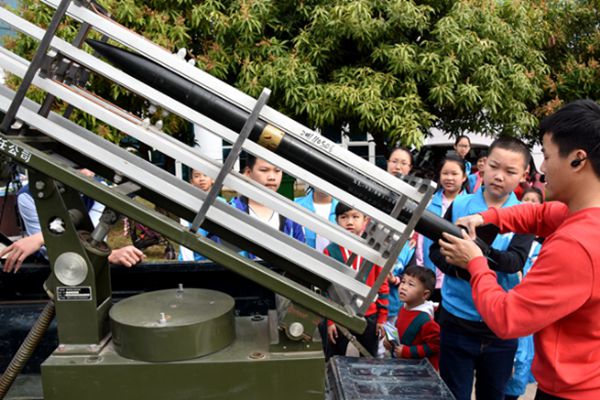 图为:为孩子们讲解人工影响天气原理 江海莲摄影