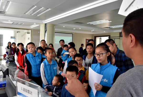 图为:业务人员为公众讲解L波段雷达探测知识 江海莲摄影