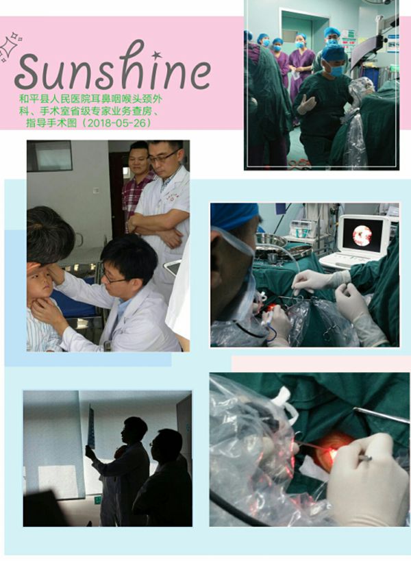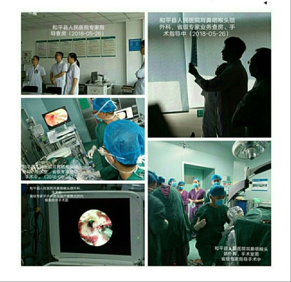 会议邀请了暨南大学附属第一医院耳鼻咽喉头颈外科主任、主任医师、医学博士、博士研究生导师、暨南大学司法鉴定中心专家张涛,佛山市第一人民医院耳鼻喉头颈外科主任医师、医学硕士刘振,中山大学附属第一医院耳鼻喉头颈外科医学博士、副教授、硕士生导师、鼻专科副主任、阿德莱德大学伊丽莎白女王医院访问学者李健等省内著名专家、教授到和平县人民医院耳鼻咽喉头颈外科进行了查房、病例讨论及手术指导。