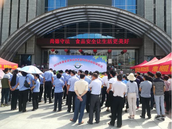 7月17日,2018年紫金县食品安全宣传周活动在县文化活动中心门口正式启动,今年活动的主题是“尚德守法,食品安全让生活更美好”。本次活动由紫金县人民政府主办,紫金县食品安全委员会办公室承办,紫金县科协、县食品药品监管局、县市场监管局、县卫计局等单位协办。各镇分管领导、县食安委成员单位代表和部分食品行业企业代表参加了活动。紫金县政府副县长黎映花出席活动并作讲话。