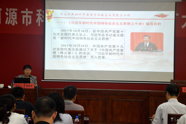 期间,市委宣读团成员黄艳秋为全体与会人员作了《习近平新时代中国特色社会主义思想三十讲》宣讲报告。