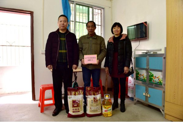 在贫困户家中,县科协领导与贫困户亲切交谈,了解贫困户的家庭情况、生活状况等,并向每户贫困户送去慰问金、大米、食用油等节日物资。并叮嘱他们注意防寒保暖、照顾好自己。