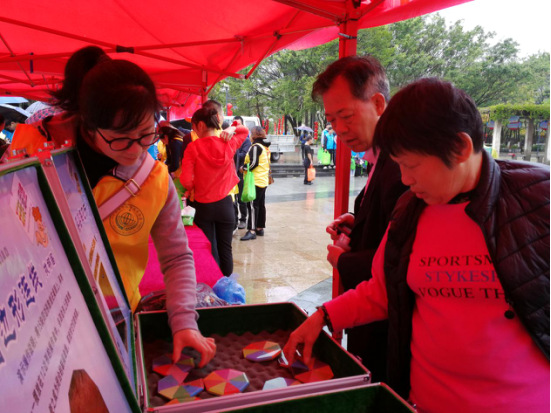 3月5日上午,2019年河源市学雷锋全民志愿服务行动月系列活动启动仪式暨“学雷锋志愿服务广场”志愿服务集中开放日活动在茶山公园举行。市科技馆科普志愿者携带益智积木等科普展品前去提供科普志愿服务。