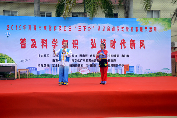 3月22日上午,河源市科协、市委宣传部、科技局、农业农村局、文化广电旅游体育局、卫生健康局、团市委、妇联、紫金县人民政府联合在紫金县柏埔镇举办2019年河源市文化科技卫生“三下乡”活动启动仪式暨科普集市活动。