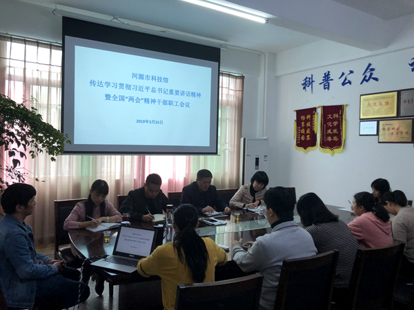 河源市科技馆召开专题会议传达学习贯彻习近平总书记重要讲话精神暨全国“两会”精神