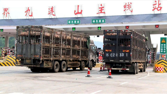 4月26日,河源市防控非洲猪瘟等动物疫病应急指挥部组织市和连平县公安、交通、农业农村局人员,以及市非洲猪瘟政企联防联控工作队在大广高速九连山主线站,共同开展打击违法违规调运生猪联合行动。