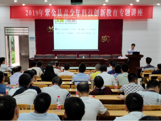 5月24日,紫金县科协、紫金县教育局联合在该县职教中心举办2019年紫金县青少年科技创新教育专题讲座。全县各中学、中心小学、县直学校分管科普工作的副校长和科技辅导员共93人参加讲座。