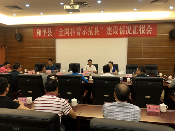 5月29日上午,河源市委常委、统战部部长叶少军到和平县调研全国科普示范县建设情况以及地方科协深化改革试点工作情况。市人大常委会副主任、科协主席吴素香陪同调研。