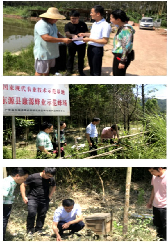 随后指导小组又来到康禾镇康源蜂业示范蜂场,该养蜂场因洪水灾害遭受重创,损失惨重。被洪水冲毁蜂群200余群,损坏蜂具物品等经济损失将近8万元。李添鸿主席勉励示范基地负责人尽快调整好心态,充分利用科学技术,积极开展灾后重建,力争早日回归甜蜜生活。