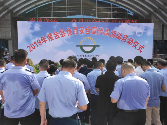 6月18日,2019年紫金县食品安全宣传周活动在县文化活动中心门口启动,今年活动的主题是“尚德守法,食品安全让生活更美好”。本次活动由紫金县人民政府主办,紫金县食品安全委员会办公室承办,紫金县科协、县市场监督管理局、县教育局等单位协办。各镇分管领导、县食安委成员单位代表和部分食品行业企业代表参加了活动。紫金县政府副县长黎映花出席活动并作讲话。