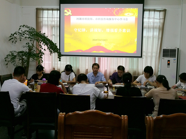 6月24日上午,河源市科协党组成员、副主席钟道良组织市科技馆、市科技咨询服务中心全体人员召开“守纪律、讲规矩,增强看齐意识”为主题的学习会。