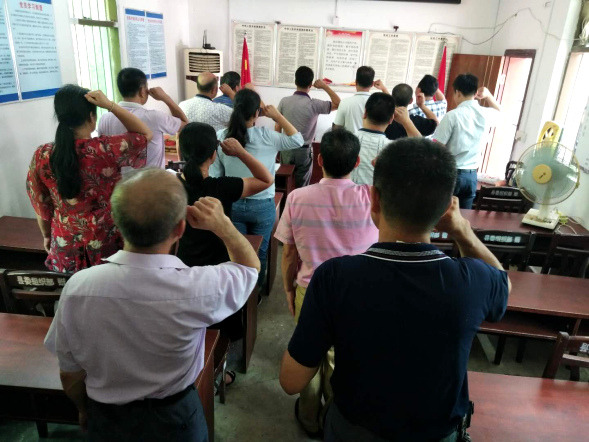 当天上午,县科协组织全体党员来到田源镇新河村,在二楼会议室召开党员大会,县科协全体党员和村两委及党员共40多人参加会议。会上,新河村书记通报了该村精准脱贫、乡村振兴和党建工作。连平县科协党支部书记、主席廖振辉为全体党员讲了题为《坚守初心,勇争先锋》的党课,他要求广大党员一是要强化政治意识,做对党忠诚的表率。要坚定理想信念,保持理论清醒,严守政治规矩。二是要强化责任意识,做勇于担当的表率。要大力解放思想,积极主动作为,紧紧围绕脱贫攻坚、环境保护、产业发展、项目建设、改革开放、党的建设等重点工作,主动研究谋划、主动思考部署,积极协调解决推进中的困难和问题,抢抓机遇顺势而为、乘势而进。要敢于攻坚破难。三是要强化大局意识,做救灾复产的表率。号召党员要牢固树立以人民为中心的思想,带着忠诚、带着感情、带着责任,积极参与救灾复产工作,以实际行动彰显共产党员的先进性,做到“坚守初心,勇争先锋”。会上还组织学习了《党章》,全体党员同举右手,在党旗下重温了入党誓词。