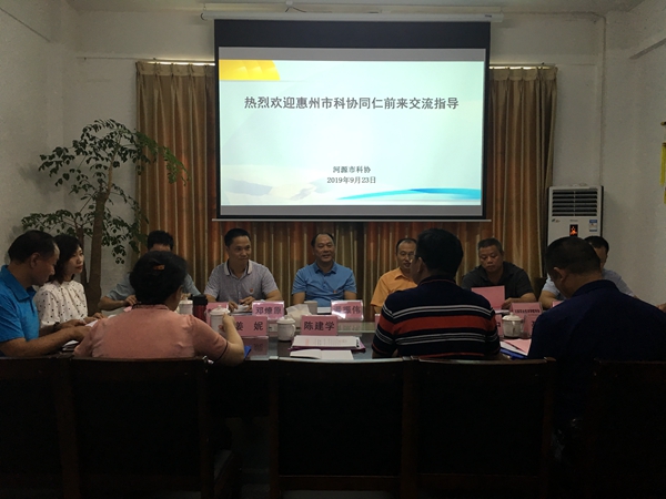 9月23日上午,惠州市科协党组成员、副主席黄宗太率领惠州市市级学会负责人或秘书长一行13人,到河源市科协学习交流。河源市科协党组成员、副主席潘振伟,副调研员辛小龙陪同。