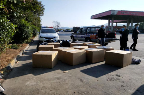 2月11日下午,县防疫指挥部通知,粤赣高速公路和平服务区联合检疫站又拦截了一涉嫌运输“三无”口罩的车辆。当天天下着雨,又湿又冷,何丰华带领执法人员冒雨赶赴现场调查取证,一直忙到晚上9点多,连晚饭都未能吃上,最终对约20万个涉嫌“三无”口罩进行依法扣押。