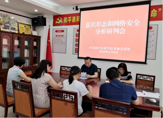 6月8日,和平县科协召开意识形态和网络安全分析研判会,总结分析上半年意识形态和网络安全工作开展情况和总体态势,研判当前面临的形势,安排部署下一步工作。