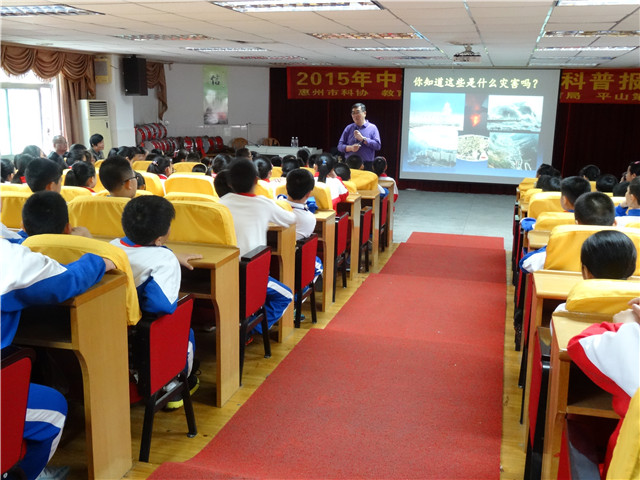 在青少年科普报告会上,徐文耀教授到惠东中学为高中师生讲述了《科学中的美》,徐德诗教授与平山一小、平山中心小学的师生们交流互动《灾害应急准备》的课题,王邦平教授带领飞鹅中学和实验中学的师生领略《物理的魅力》,孙万儒教授来到大岭中心学校告诉大家如何《告别垃圾污染,变废为宝》,还给平山二中的学生解答了《食品安全问题与恐慌》的有关疑问。