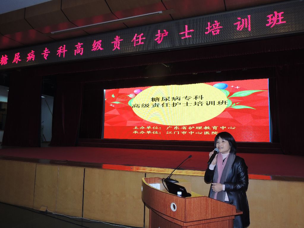 目前,在糖尿病发病率飙升的形式下,如何借鉴糖尿病专科护理发展的宝贵经验,建立与之相适应的高级责任护士培训模式,是糖尿病专科护理发展面临的重要问题。2014年12月20日上午,江门市护理学会联合广东省护理教育中心在市中心医院多功能厅举办了糖尿病专科高级责任护士培训。会场座无虚席,来自全市医疗单位近300名护理人员参加了培训。市中心医院副院长龙晚生主任医师为培训班致辞,市护理学理事长陈玉珍主任护师主持培训班。