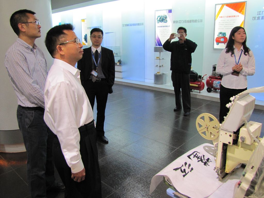 当日下午,冯日光副主席一行前往江门火炬高新技术创业园和广东工业设计城江门基地视察,参观了创业园内蓬江区创新科技成果展厅和江门基地内蓬江区创新创意工业设计产品,考察了广东安保翼家物联网智能科技股份有限公司和江门同天投资管理有限公司等两家科技中小型企业。