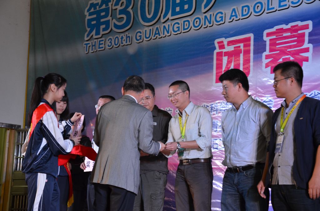 3月28日,第30届广东省青少年科技创新大赛在河源中学隆重举行。有来自全省各地的2000多名青少年现场展示自己的创新精神和动手能力。江门市组团38名参加竞赛的学生选手和科技辅导员,携带项目和作品41项(幅)参加了竞赛。经过与全省24个代表队激烈角逐,终获得42个奖项。其中,江门市紫茶小学马艺鸣《红茶对瓶插玫瑰花保鲜的探究实验》项目勇夺青少年科技创新成果(小学组)一等奖;开平市长沙街幕村小学的学生两幅科幻绘画获全省一等奖。
