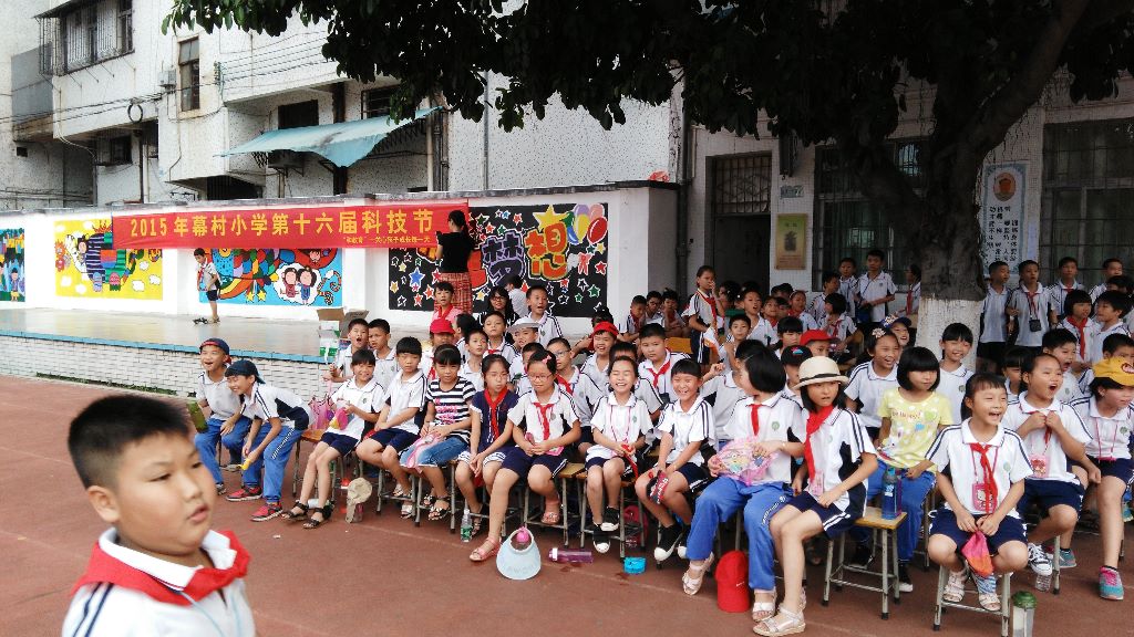 幕村小学是江门市、开平市两级的青少年科普示范学校。学校一贯以来推进科技素质教育,培养学生树立创新思维与实践能力的一个平台。在科技节上,同学们“变废为宝”的科技小制作琳琅满目,种类繁多,集实用性和美观性于一体;有创作的科幻画、科普手抄报、电脑画,让师生们驻足观望,流连忘返。比赛场上,小选手们操纵的遥控飞机上下翻飞,引得观众席上的同学们欢呼不断;遥控四驱车娴熟地绕着“8”字圈也博得了阵阵掌声。在水池中,同学们的自制纸船“乘风破浪”;蓝天上,同学们的自制风筝遨游空中……