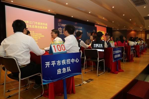 江门市预防医学会承办的2015年江门市疾控系统公共卫生应急技能竞赛于近日在市疾控中心圆满结束。竞赛期间,邀请了国家卫计委突发事件公共卫生风险评估专家组成员、省卫计委突发公共卫生事件应急专家委员会委员、中国现场流行病学培训项目专家宋铁担到现场指导。在表彰会上,市总工会、卫计、人社、经信和科技等部门领导为获奖单位和个人颁奖。通过竞赛,让江门市更加重视应急人才队伍建设,培养造就更多具备良好职业素质、掌握精湛技能的卫生应急人才,为推动江门市疾病预防控制系统的发展做出更大的贡献。