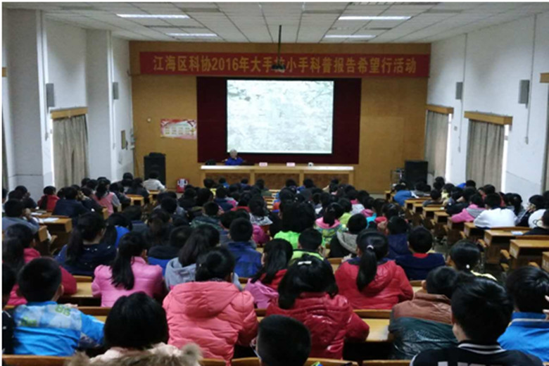 江门市2016年“大手拉小手-科普报告行”走进江海区中小学校