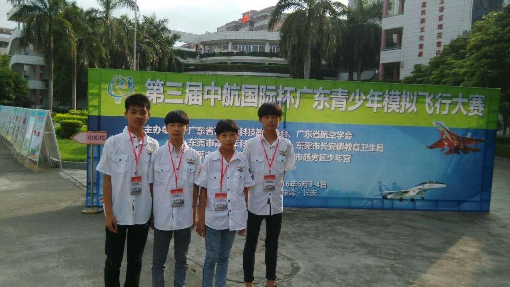 广东省第三届中航国际杯青少年模拟飞行大赛于6月3日至4日在东莞市长安镇长安第二小学举行。恩平市冯如纪念中学吴俊庆、吴炯涛、吴海弘、吴艺臻4位同学组成代表队,肩负着航空特色教育的希望,在学校老师的指导下,经过激烈的角逐,获得团体冠军的荣誉,同时获得最佳团体奖的荣誉称号,成绩斐然。
